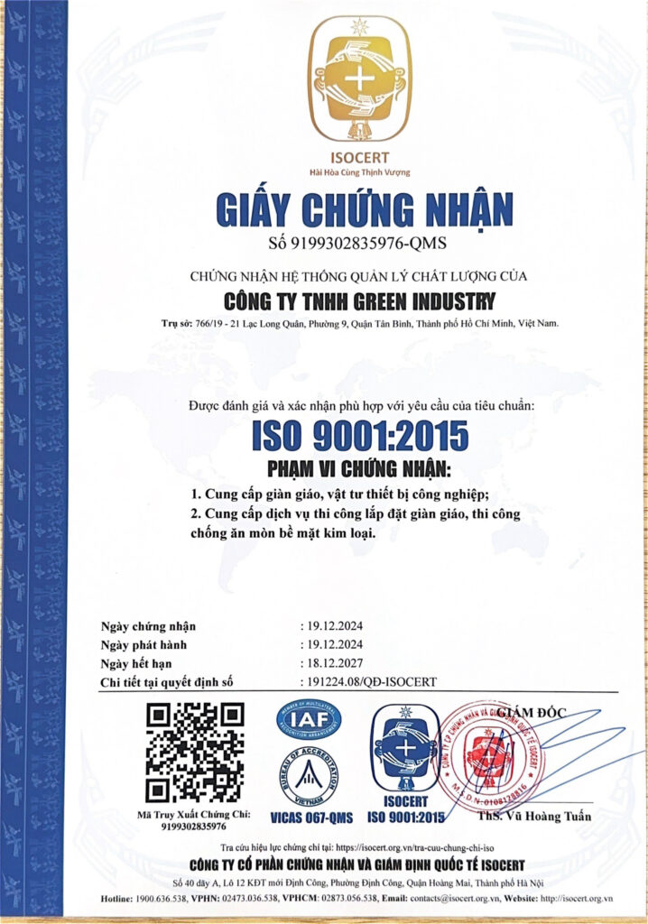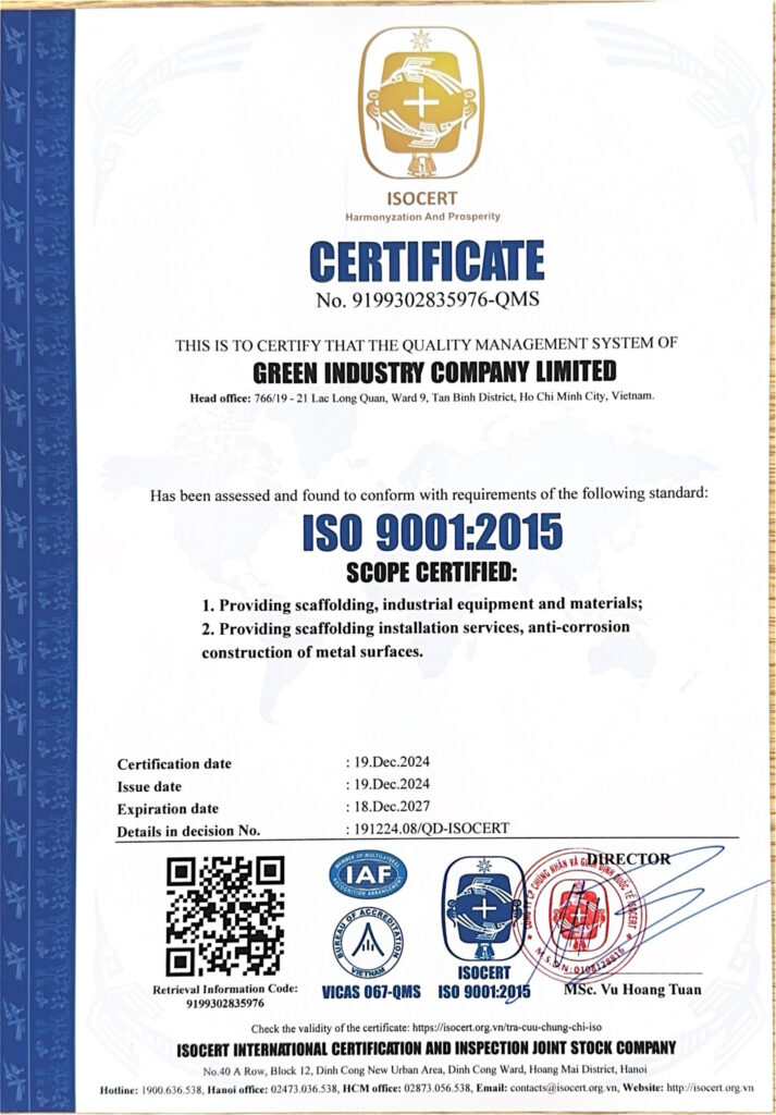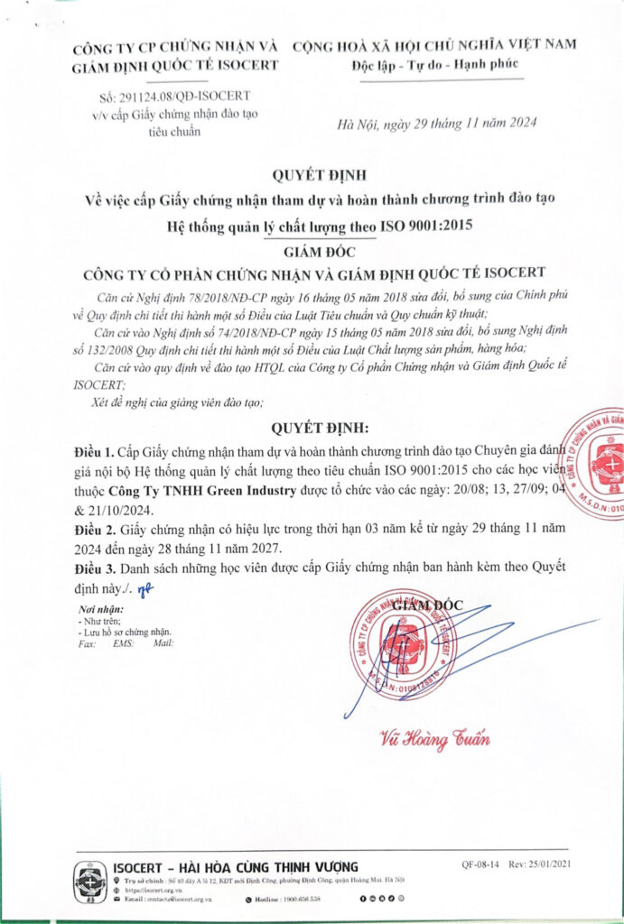 GIẤY CHỨNG NHẬN ISO 9001:2015